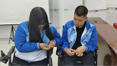 活動尾聲,學生(shēng)科(kē)、團委劉佩茹、馬航老(lǎo)師(shī)親自(zì)示範編制(zhì)五彩手繩的(de)基本步驟和(hé)技(jìλ)巧,帶領學生(shēng)将一(yī)根根普通(tōng)的(de)繩子(zǐ)編織成一(yī)條條色彩斑斓的(de)五彩繩 ,通(tōng)過動手操作(zuò),深刻體(tǐ)味了(le)傳統節日(rì)的(de)魅力和(hé)價值。